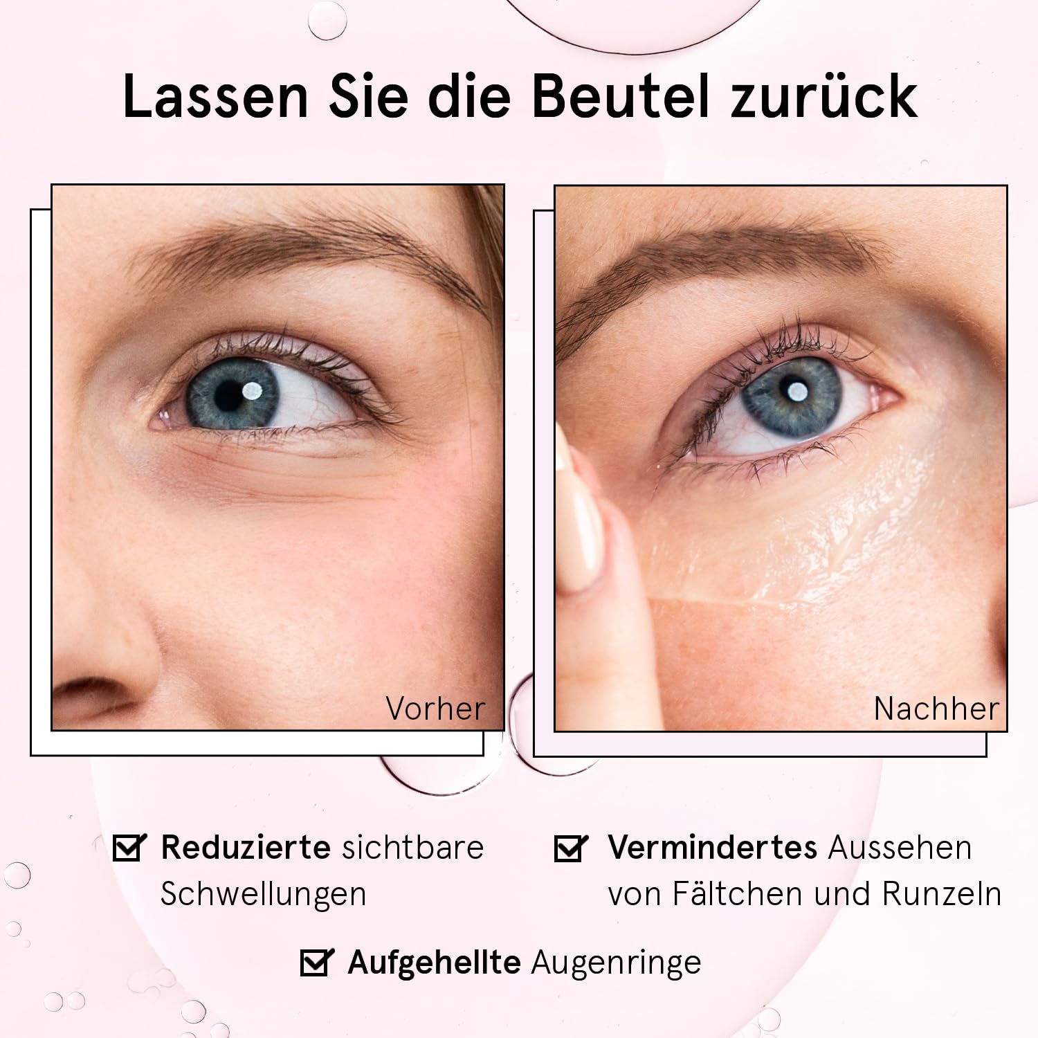 Ziel: Dunkle Augenringe, Schwellungen und feine Linien reduzieren; ein wacheres, erholtes Aussehen.